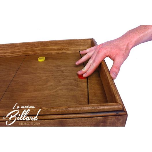 La surface de jeu se patinera dans le temps, grâce à sa cire. Ainsi, elle glissera de plus en plus au fil du temps. Les palets améliorent également la glisse, puisque ceux-ci sont réalisés en buis, un bois dense et très lisse qui renforce l’aspect glissant de ce jeu en bois.